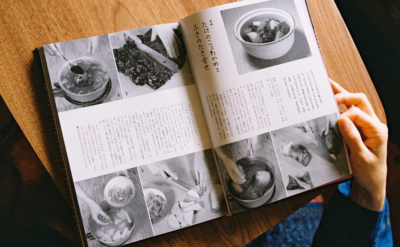 「たけのことわかめとふきのたき合せ」は素材も手順もシンプルなのに、ひと口目でたけのこの味を感じて、もうひと口食べるとわかめとふきの風味が表れてくる。素材それぞれの味と香りがしっかり感じられて、塩加減、ダシのうま味の調和が絶妙。とても豊かなんです。仕上げにしぼりしょうがをたらす茶碗蒸しは、そのひと手間で香りと味と気持ちが(笑)格段に“上昇”します。高野豆腐を揚げてほんのりうす味のダシで煮る「高野豆腐のおらんだ煮」もおいしかったなぁ。挙げればキリがありません。掲載されている写真や道具はレトロな印象だけど、どのお料理もしゃれた味わいで、まっすぐなおいしさなのです。レシピに添えてある説明の文章も面白い。本を作られた方々の想いを感じます。
