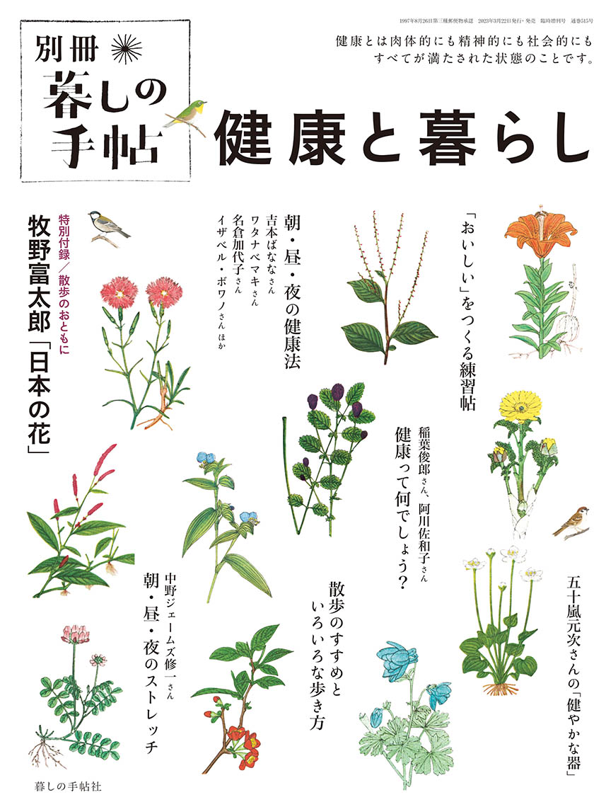 健康とは「病気ではないこと」だけではありません。体も心も、そして社会も健全であること、そして、それは「幸せ」への入り口の一つなのかもしれません。この本では、健やかな毎日を送る方々の習慣や、料理、運動など、さまざまな視点から「健康」について考えました。『おしゃれと暮らし』に続く好評シリーズ二冊目です。牧野富太郎監修の「日本の花」や「日本の鳥」を収めた小冊子も付いています。散歩のおともにどうぞ。