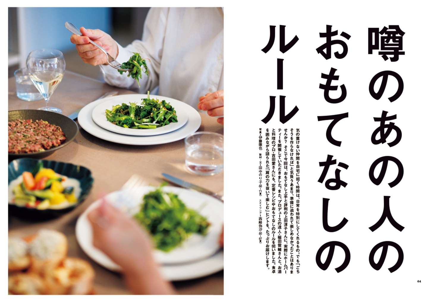 特別な日のごちそうを気負わず楽しむメニューとヒントを、おもてなし上手の方々にうかがいました。試作を重ねた編集部員が頼りにするレシピや、スペシャル対談、豪華エッセイまで、充実の内容でお届けします。お祝いごとや季節行事に、ぜひお役立てください。