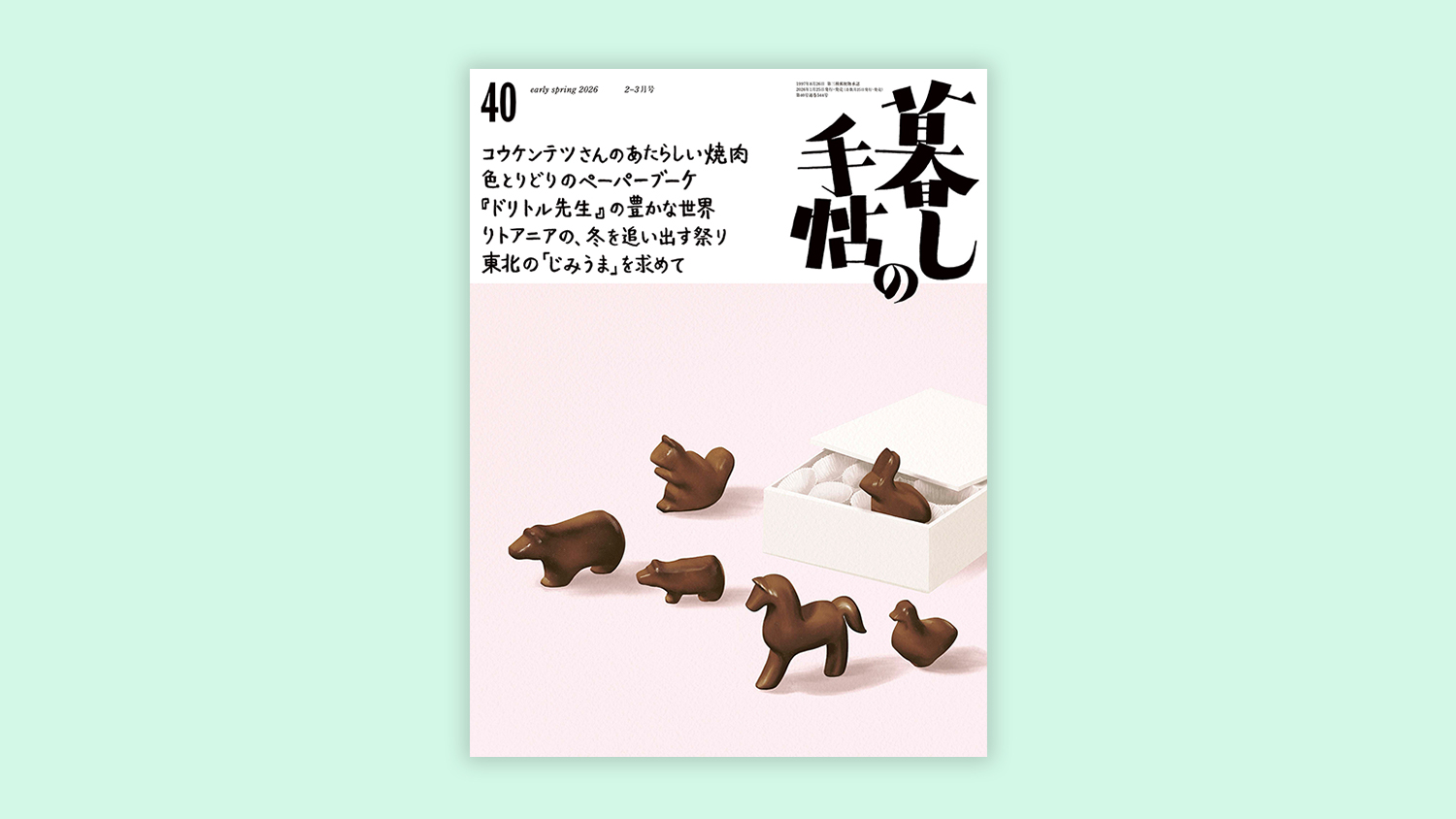 最新号は、愛らしい薄桃色の表紙が目印です。描かれている動物たちは一見、オブジェのように見えますが、よくよく眺めると実は──。ヒントは「バレンタインデー」。ぜひ、お手にとって確認してみてくださいね。
