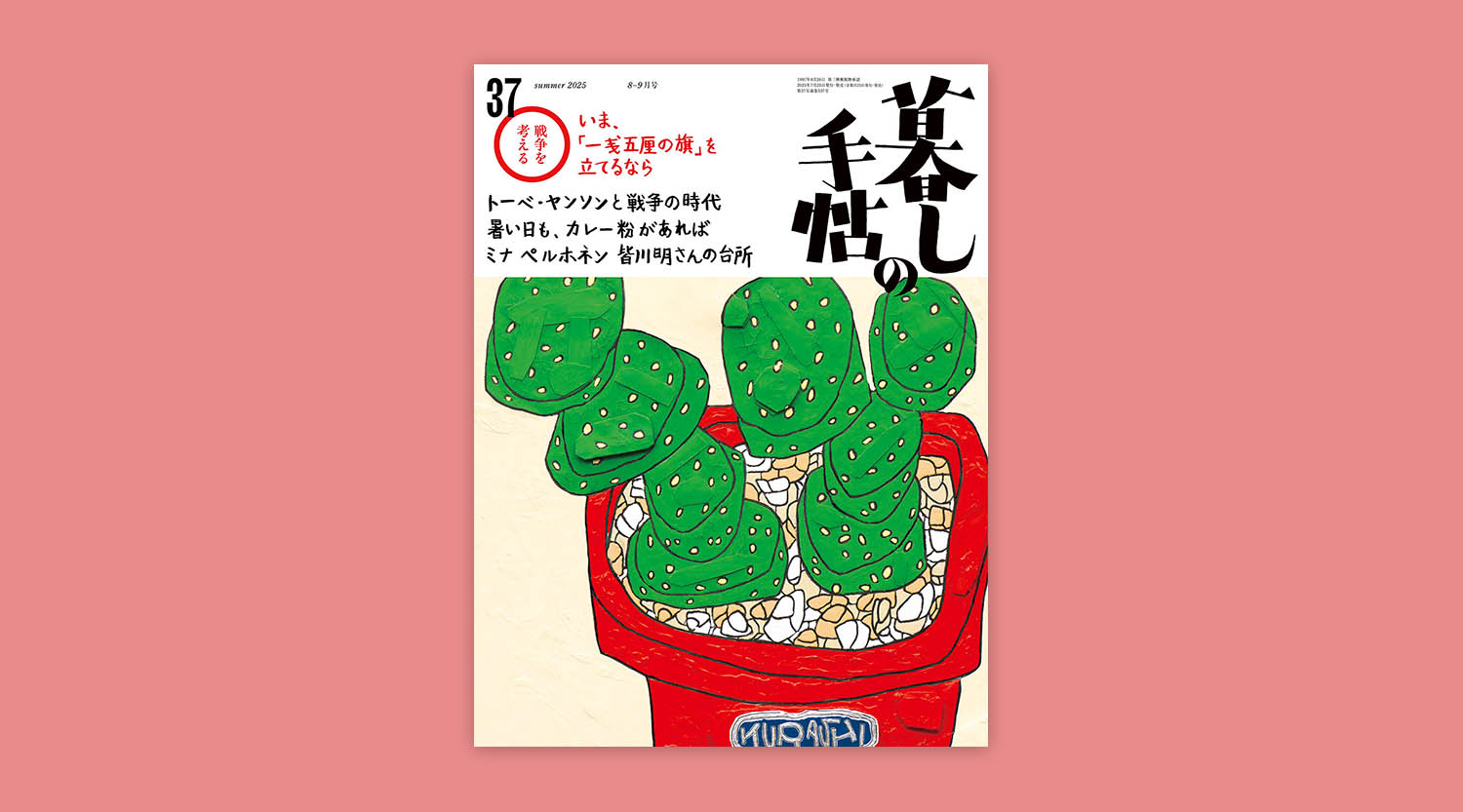 本号の『暮しの手帖』は、「戦争を考える」という大きな柱を立てました。ふだんは「日々の暮らしに役立つ内容を」と心がけて制作している小誌ですが、戦後80年のいま、どうしても、皆さまとともに立ち止まり、戦争について考えたかったのです。巻頭特集「いま、『一銭五厘の旗』を立てるなら」をはじめ、「硫黄島の日々を振り返る」「トーベ・ヤンソンと戦争の時代」「翻訳者に教わる、知らない戦争を教えてくれる本」といった企画を用意しました。