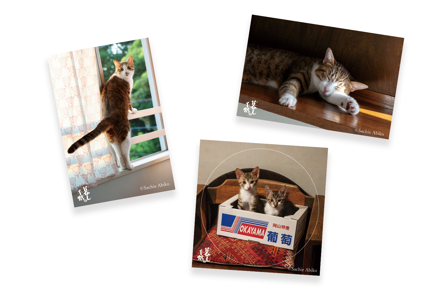 写真家・安彦幸枝さんと暮らす、保護猫の「タロ」と「ピーヤ」、友人に引き取られた「ミニミニ」。のびやかな姿と豊かな表情が、なんとも愛らしいステッカーです。『暮しの手帖』5世紀41号とのセット販売もご用意しました。