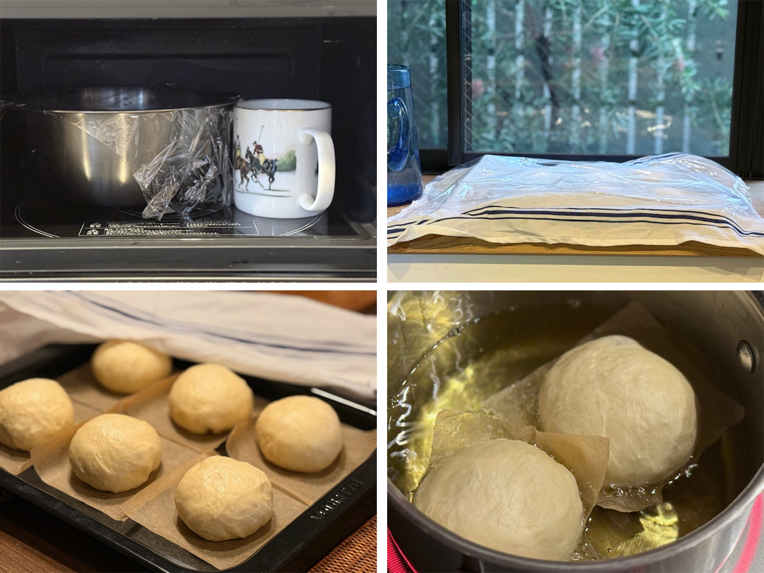 マラサダは暖かいハワイでよく作られるお菓子なので、やや高めの温度、27〜30℃が向いています。寒い季節で、オーブンなどの発酵機能を使わない場合は、以下の方法をお試しください。