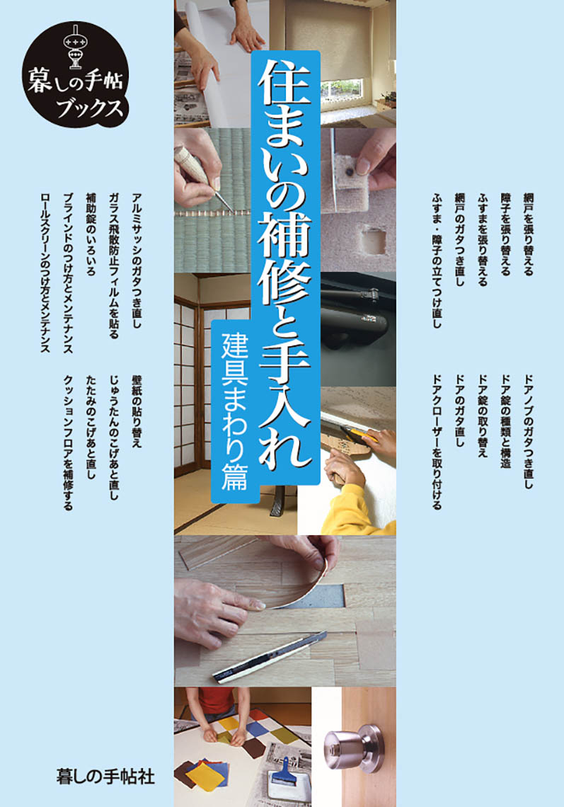 住まいは、長く住んでいるとあちこちが傷んできます。網戸やふすま、障子などの建具は、傷んできたら、補修が必要になってきます。ふだんの補修と手入れは、決してむつかしいことではありません。自分で補修できるところは、自分でやってみませんか。